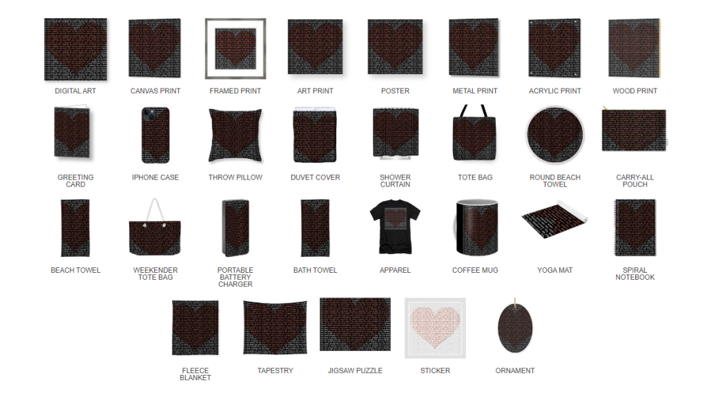 Spring give a lot more control over the designs on each product. It takes longer to upload each design due to this creative control but I hope you love the end result. If a design isn’t on a product you would like it on let me know and I’ll try and create it just for you.